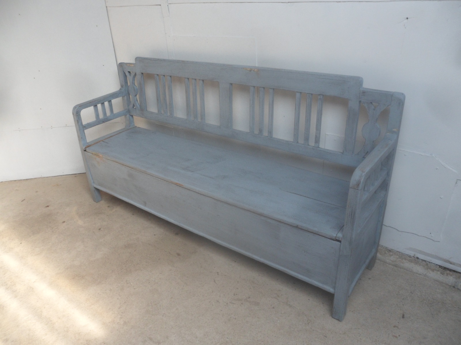 Painted Sky Blue Stepped Victorian Antique Pine Kitchen Box / Settle / Bench