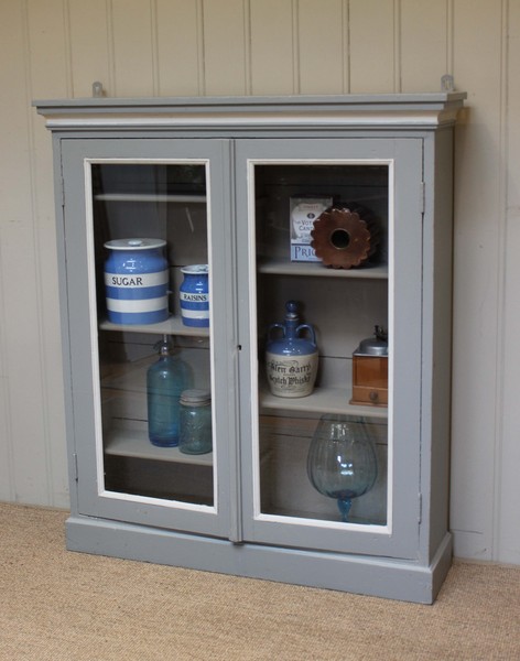 Painted Two Door Glazed Bookcase, English (1 of 1)