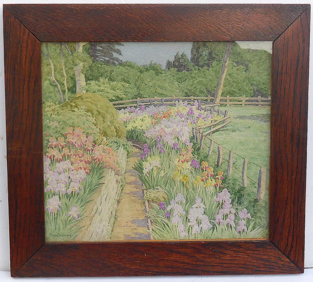 For sale is this lovely early 20th century watercolour on paper painting of an English garden in the summertime. It is signed, lower left, Frances Drummond, and is framed with a period oak frame. I would estimate it was painted between 1915 and 1925. The frame measures about 13 1/2 x 15 inches and weighs a total of 1,539 grams including the glass which I will be shipping with the painting. Condition is good with strong bright colours. A couple of ink flecks on the garden path. The painting is slightly smaller than the frame. Minor wear and tear only to the frame. Shipping will be free within the United Kingdom.