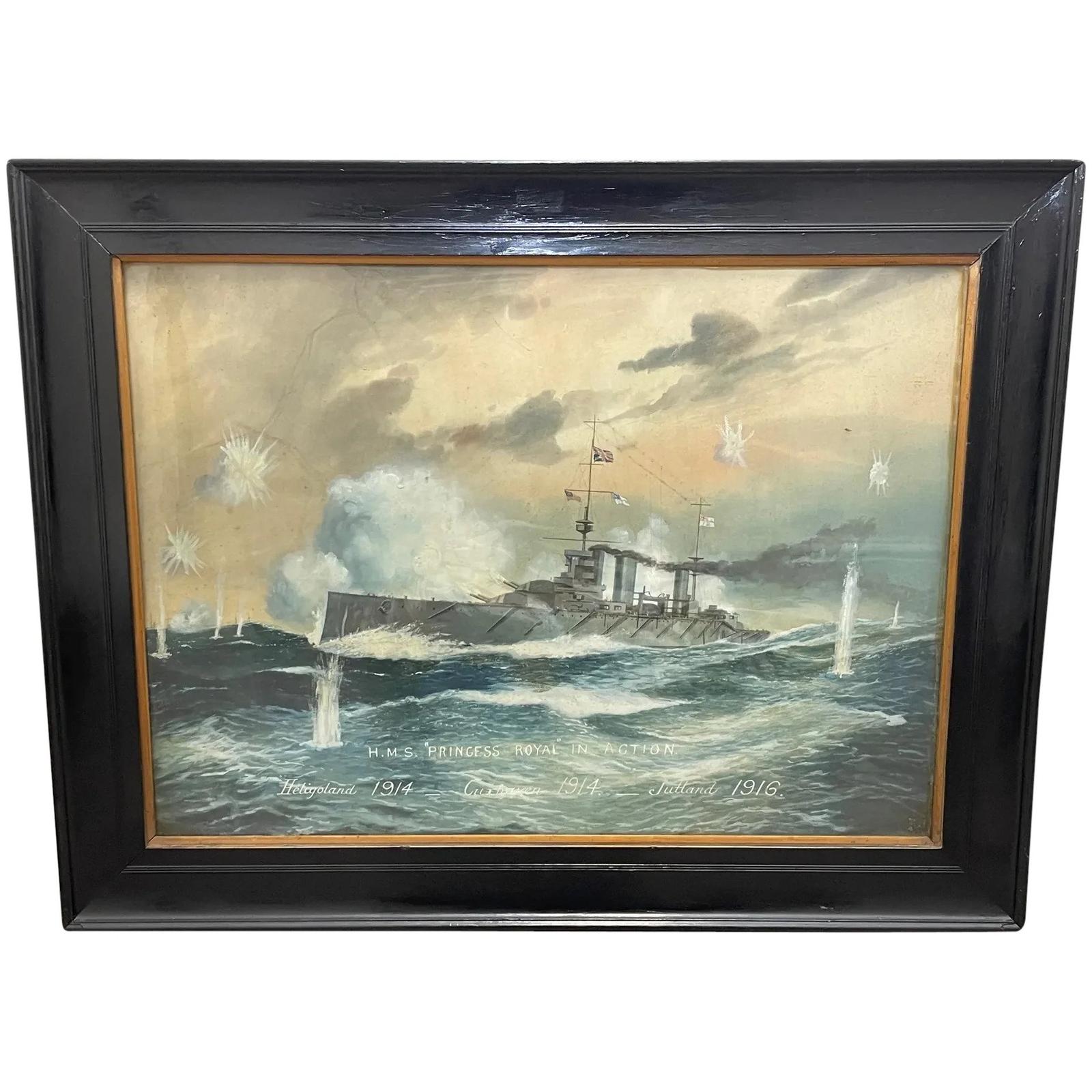 Painting WW1 Battle HMS Princess Royal in Action Heligoland Cuxaven Jutland