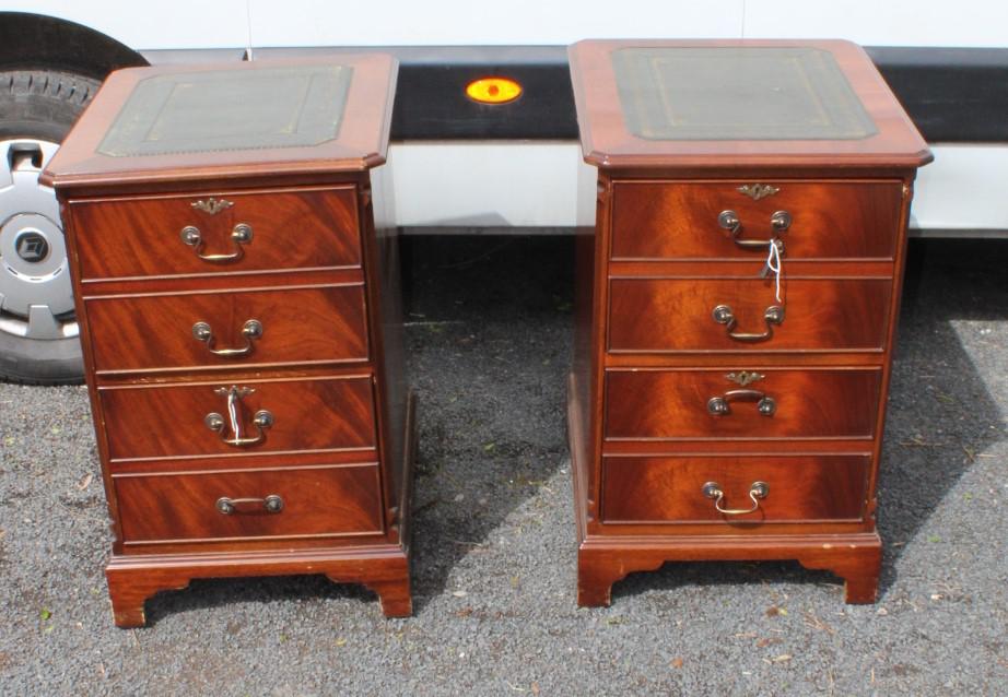 Pair 1960s Mahogany Filing Cabinets with Green Leather Top