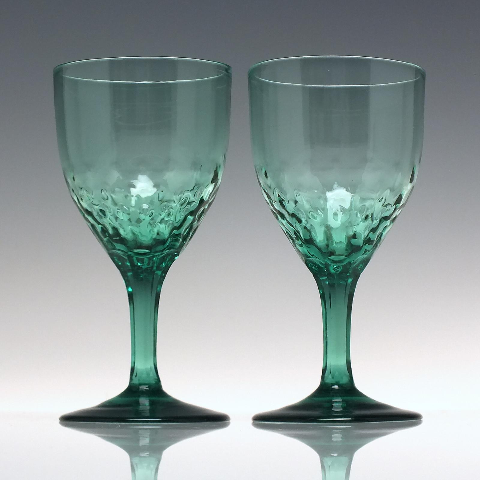 Pair 19th Century Green Wine Glasses With Hammer Moulded Bowls C1850