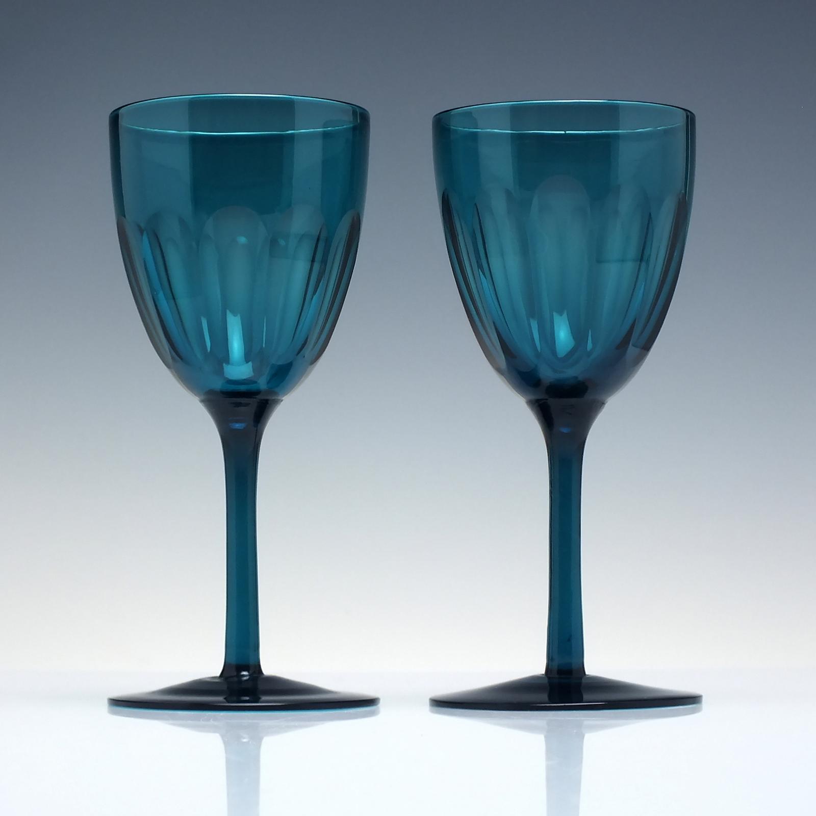 A fine pair of 19th-century Peacock Blue wine glasses dating to c1880.