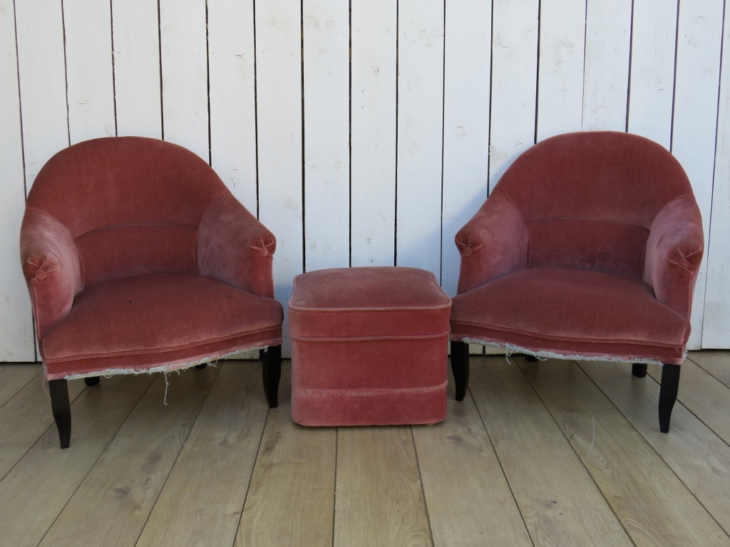 Pair 40's Tub Chairs & Stool For Re-Upholstery