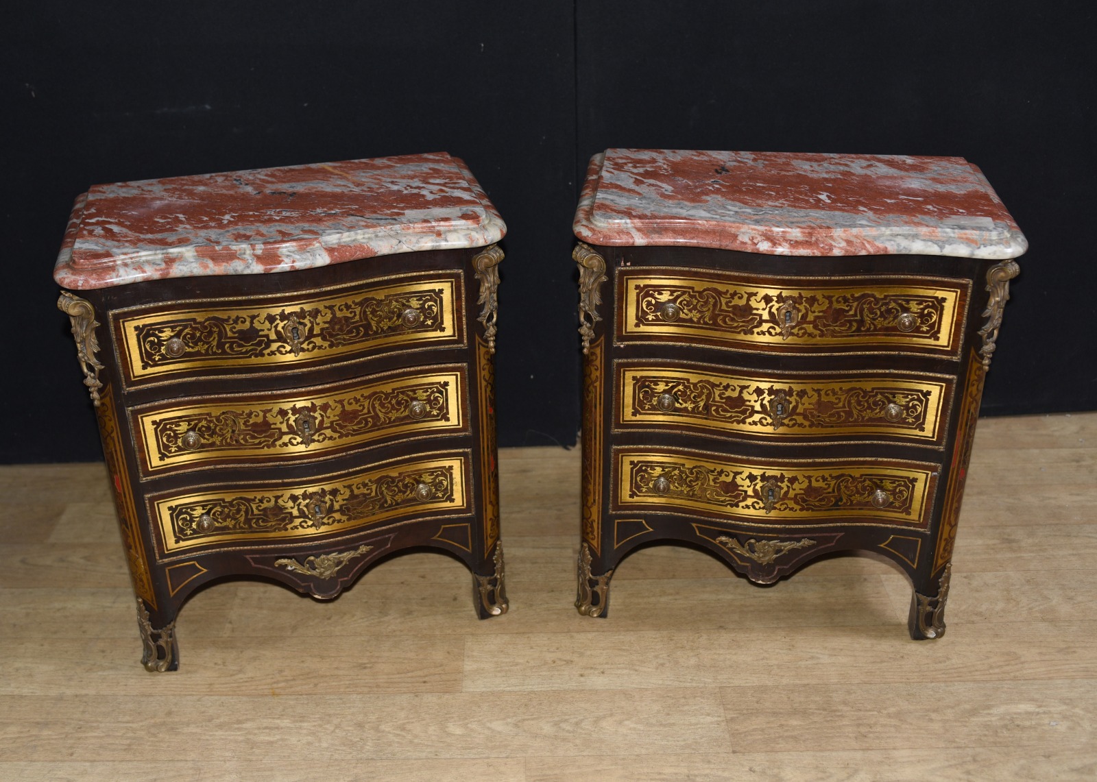 Pair Antique Boulle Bedside Chests - Nighstands Commodes