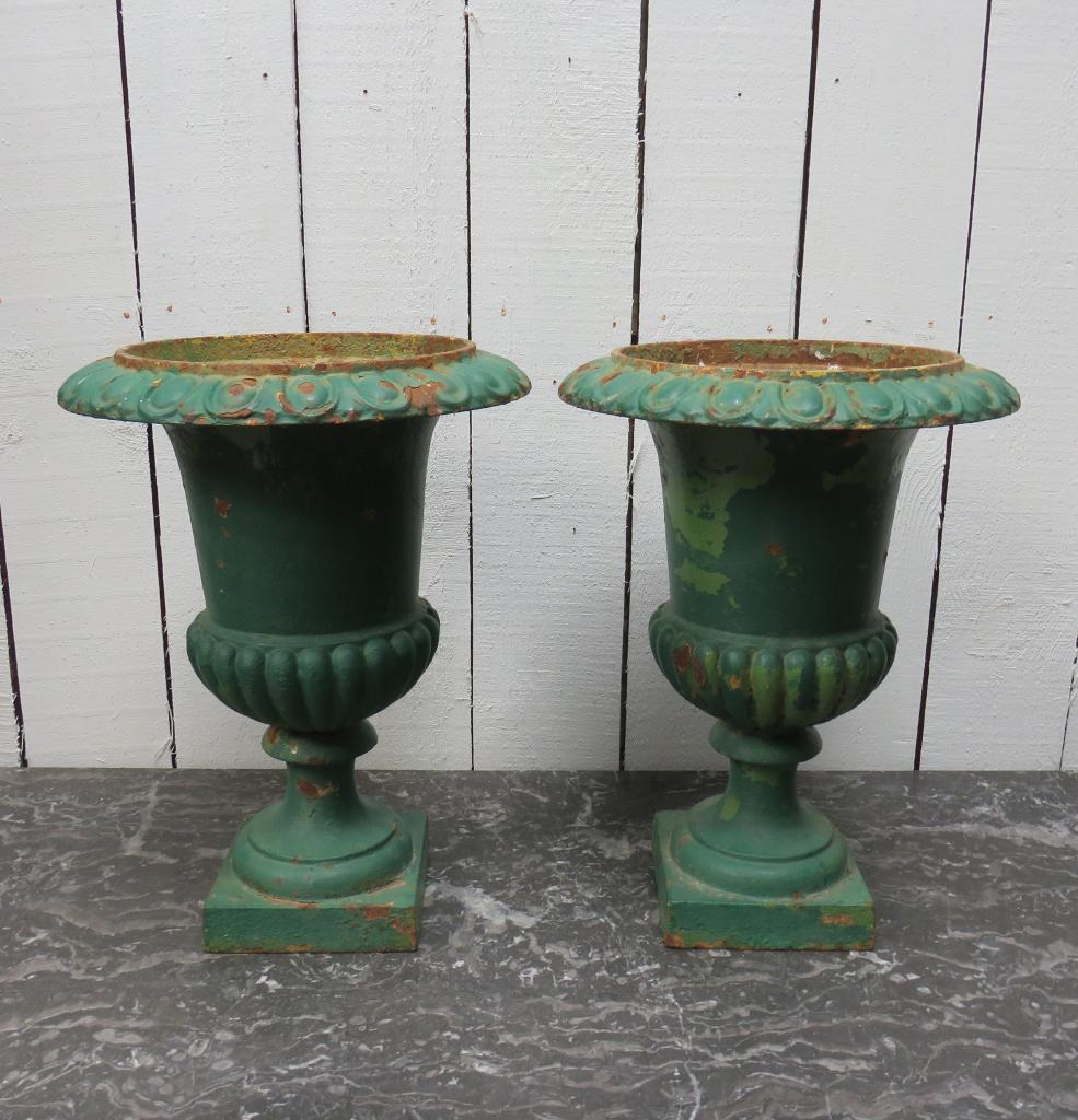 Pair Antique Cast Iron Medici Urns