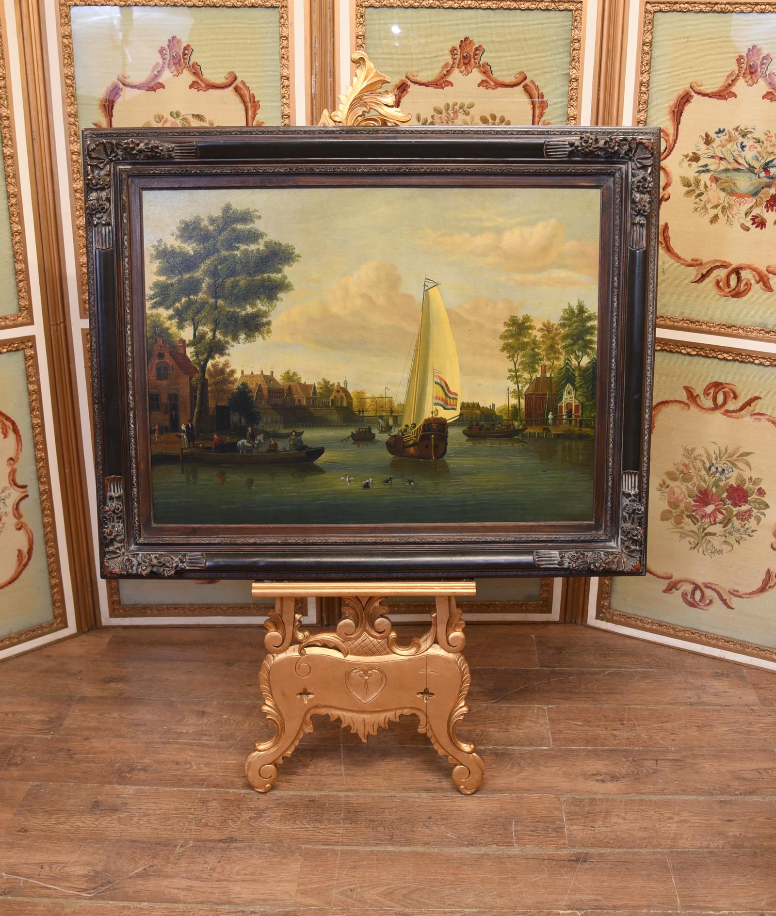 Pair Antique Dutch Oil Paintings Boat Scenes Riverscape 1860