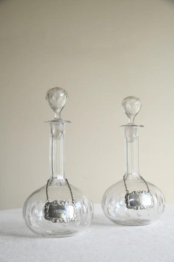 Pair Antique Globe Decanters