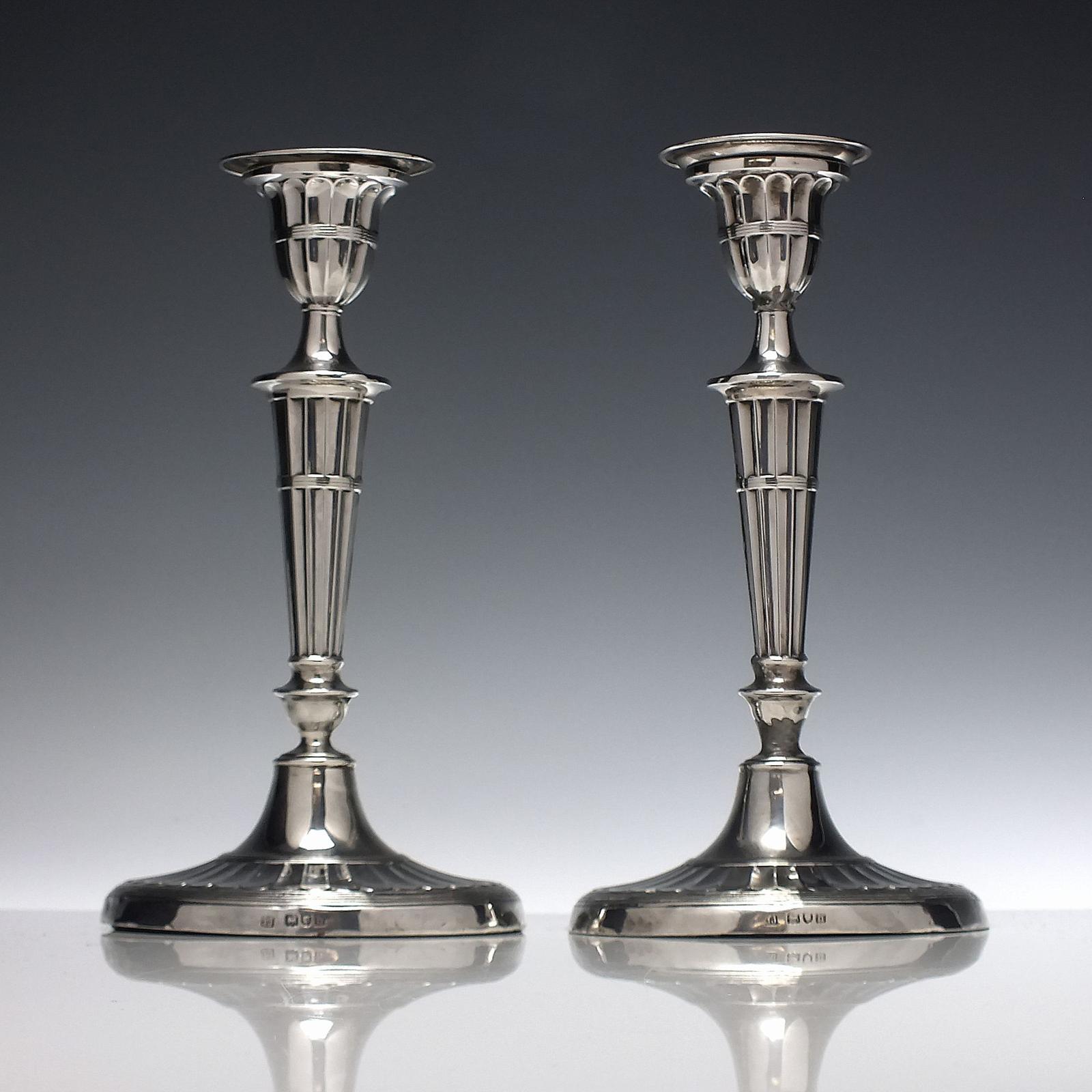 Pair Antique Silver Edwardian Candle Sticks London 1903