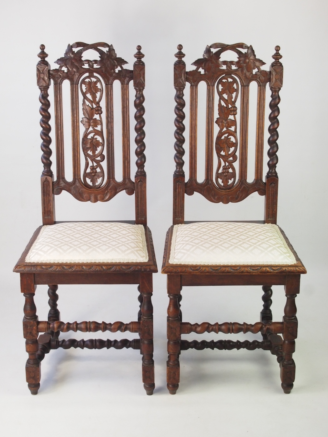 Pair Antique Victorian Gothic Revival Oak Chairs
