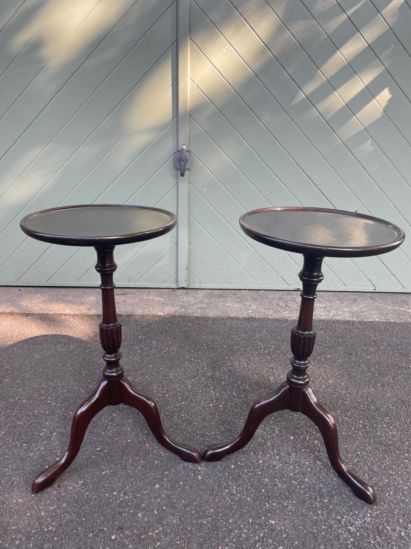 Pair Antique Walnut Tripod Wine Tables
