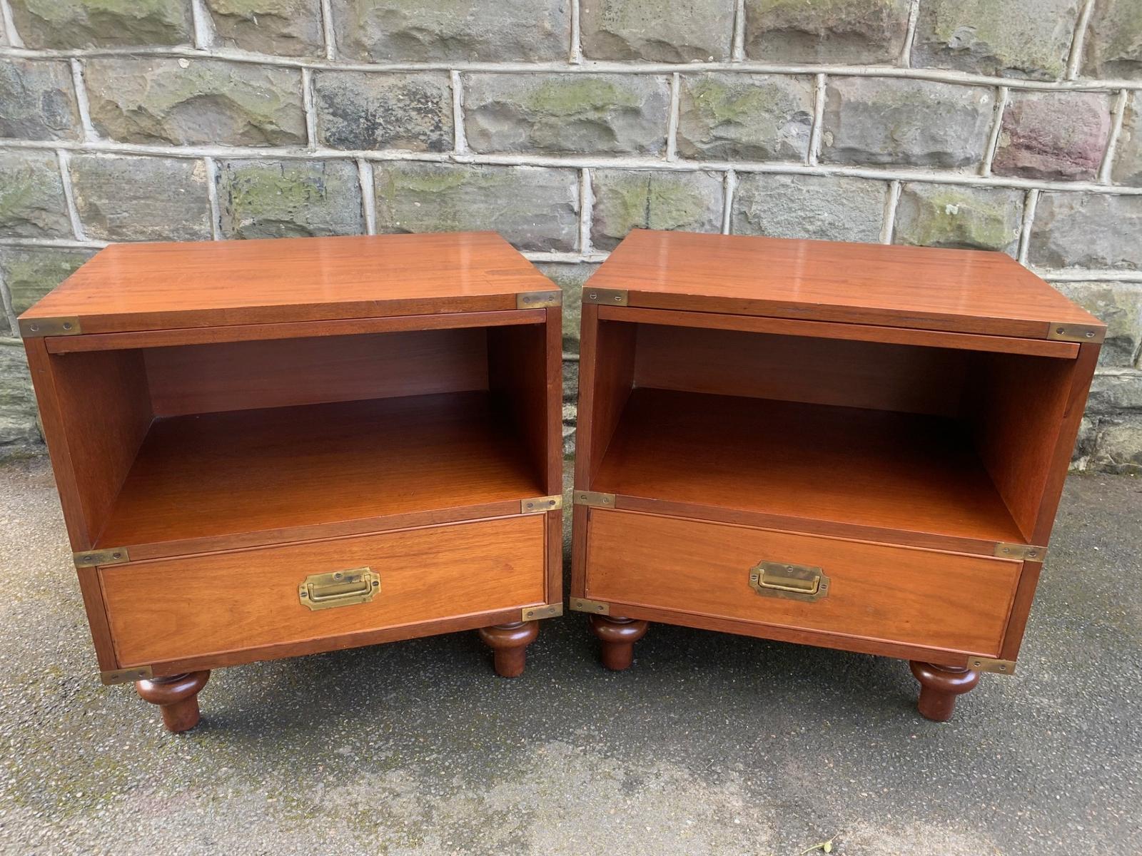 Pair Brass Bound Mahogany Military Campaign Style Bedside Tables