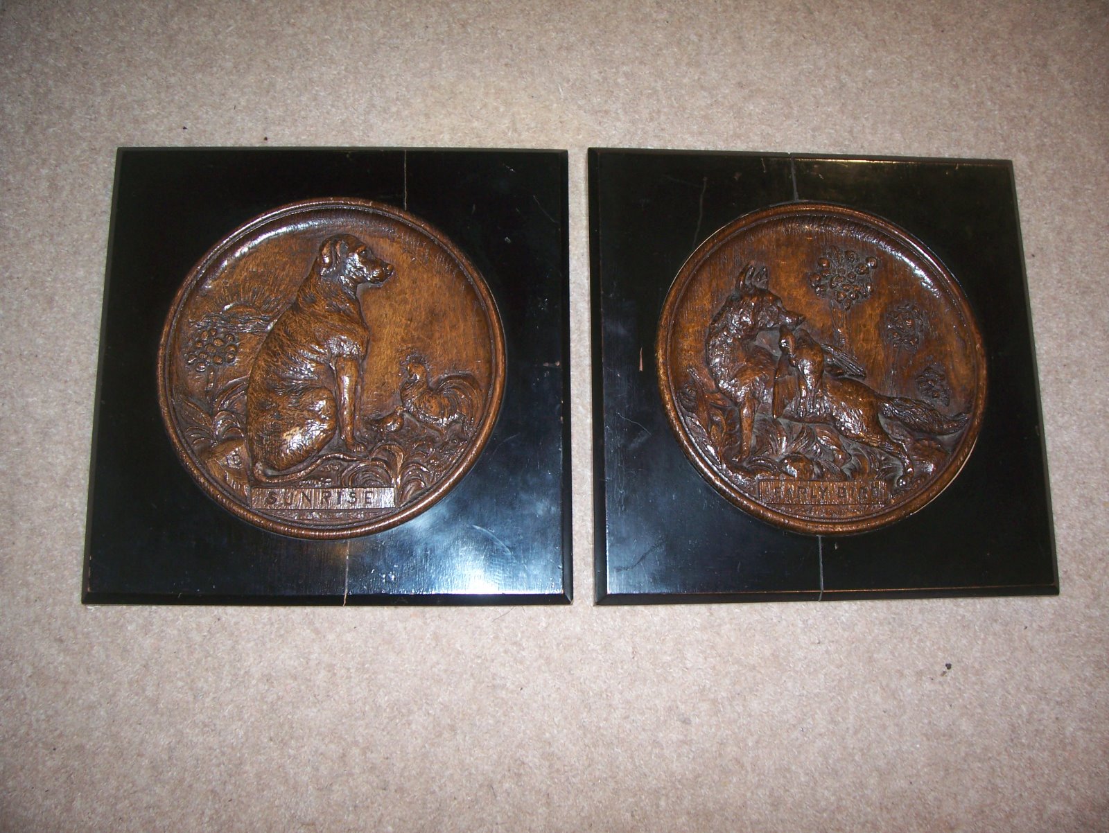 Pair c19th Oak Carved Plaques (1 of 9)