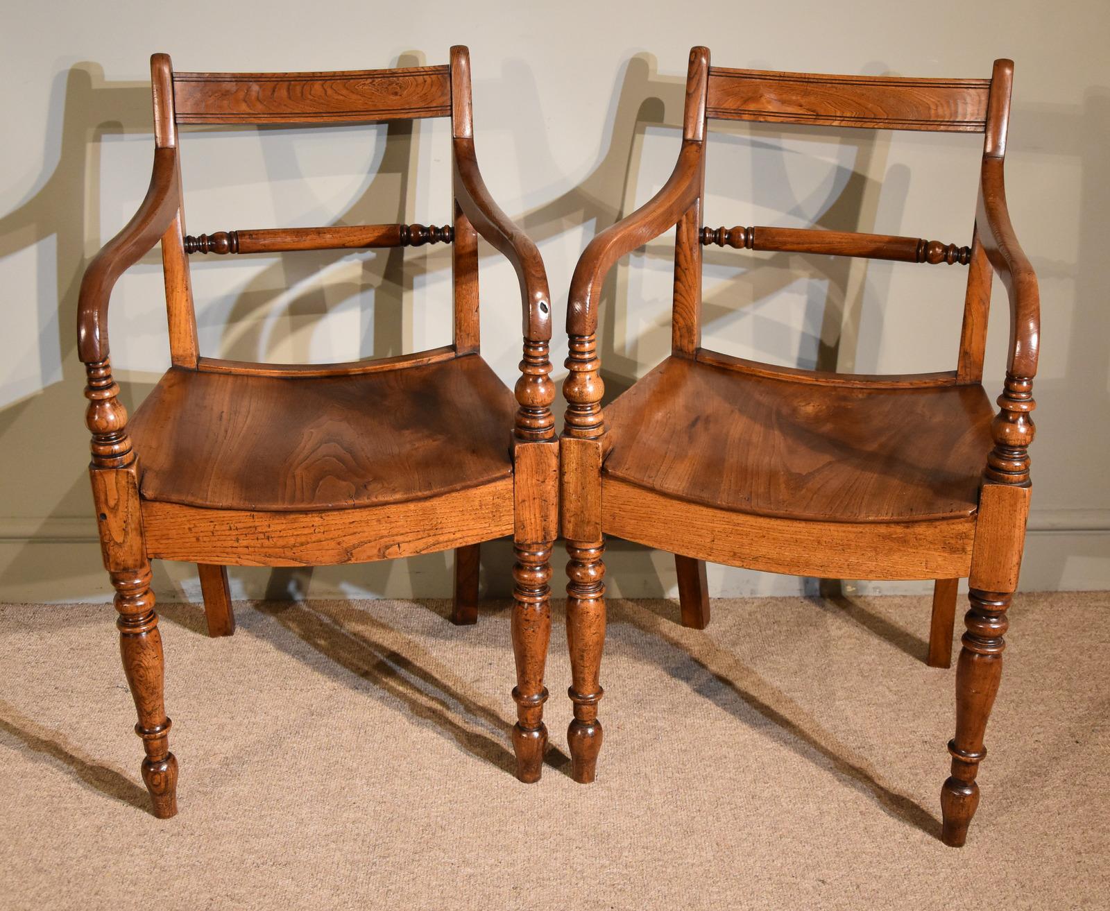 Pair Carvers Armchairs Bow Seated Elm (1 of 6)