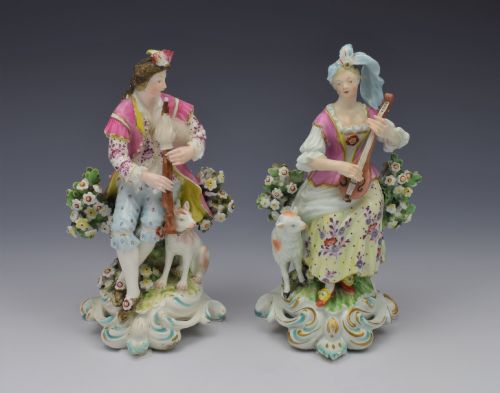 Pair Early Derby Figures Pair Sitting Piper & Guitar Model 301 18th Century