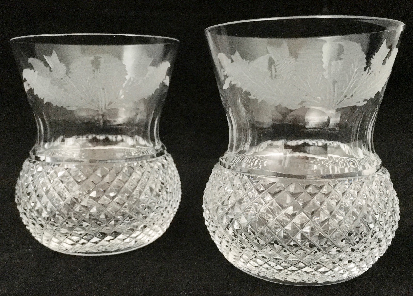 Pair Edinburgh Crystal Thistle Whiskey Glasses C.1960