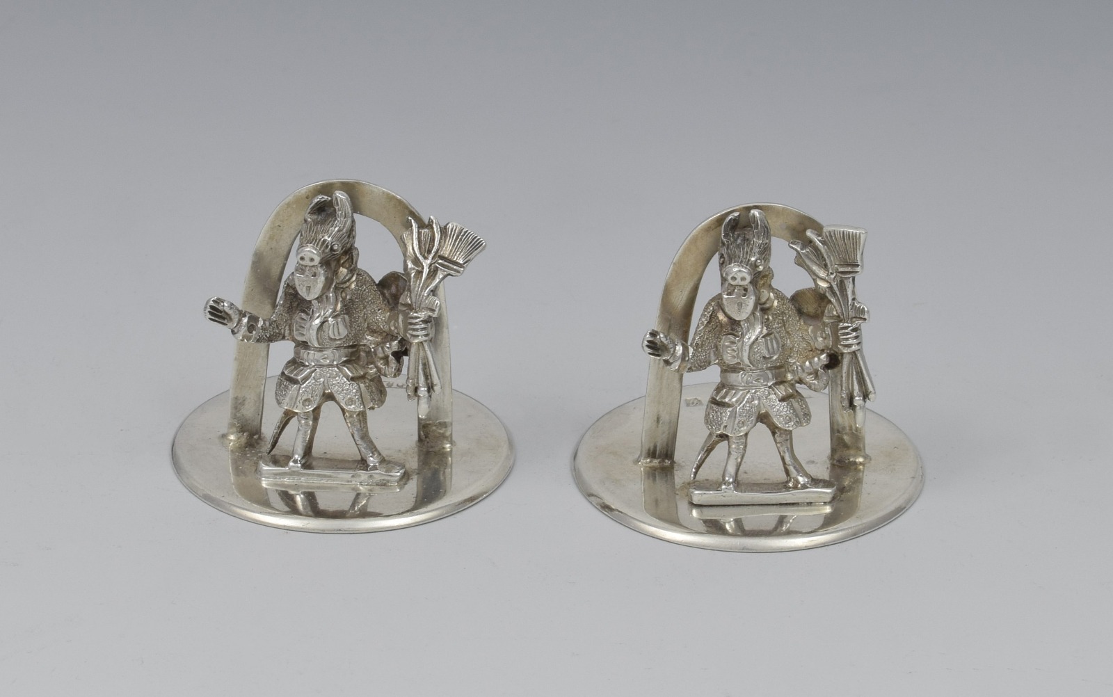 Pair Edwardian Silver Trusty Servant Menu Holders Winchester College