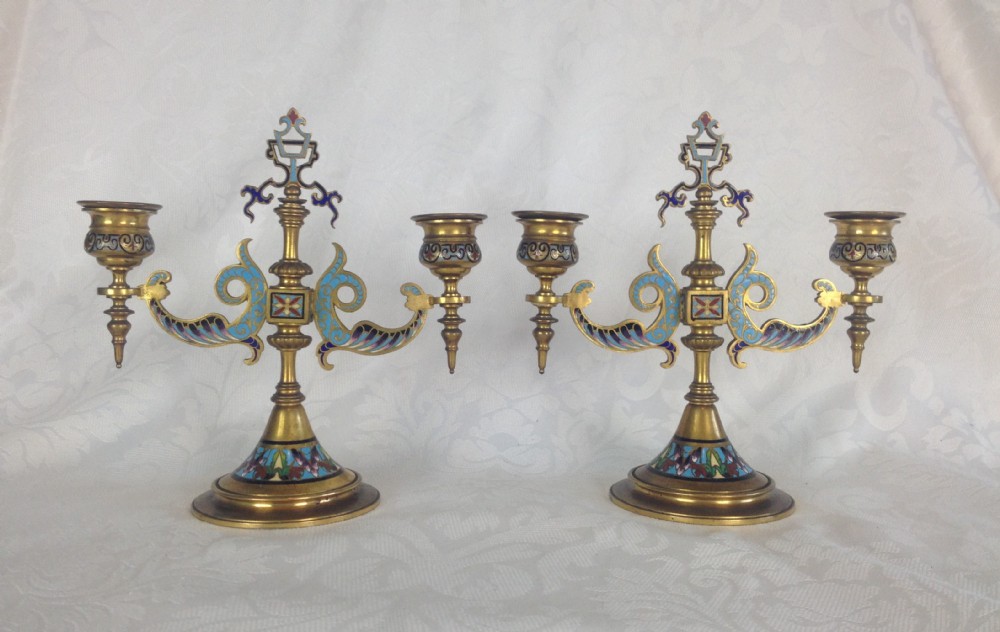 Pair French Gilt Bronze Champleve Enamel Turkish Style Candelabra (1 of 1)