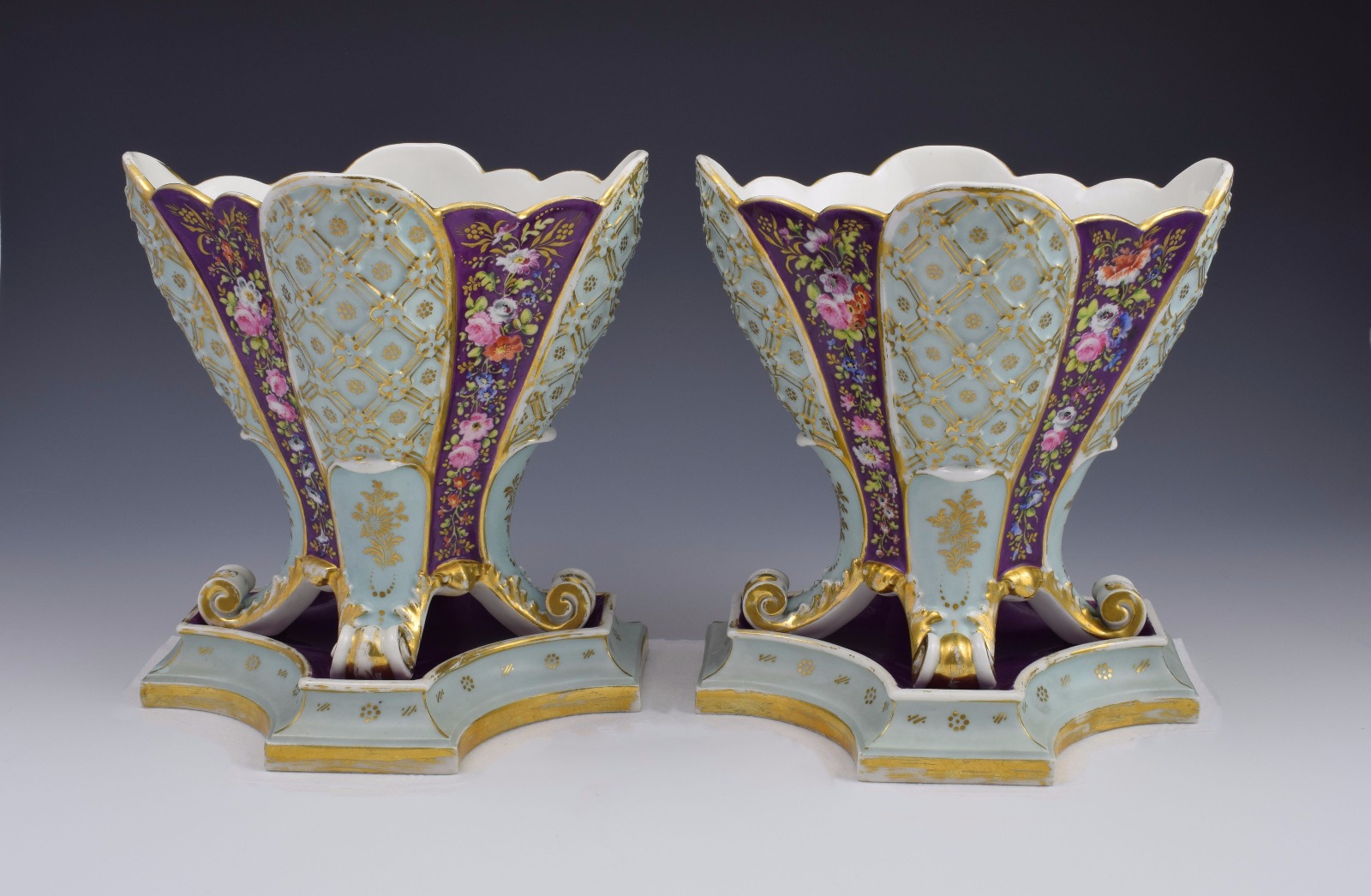 Pair French Paris Jacob Petit Quatrefoil Porcelain Vases On Stands