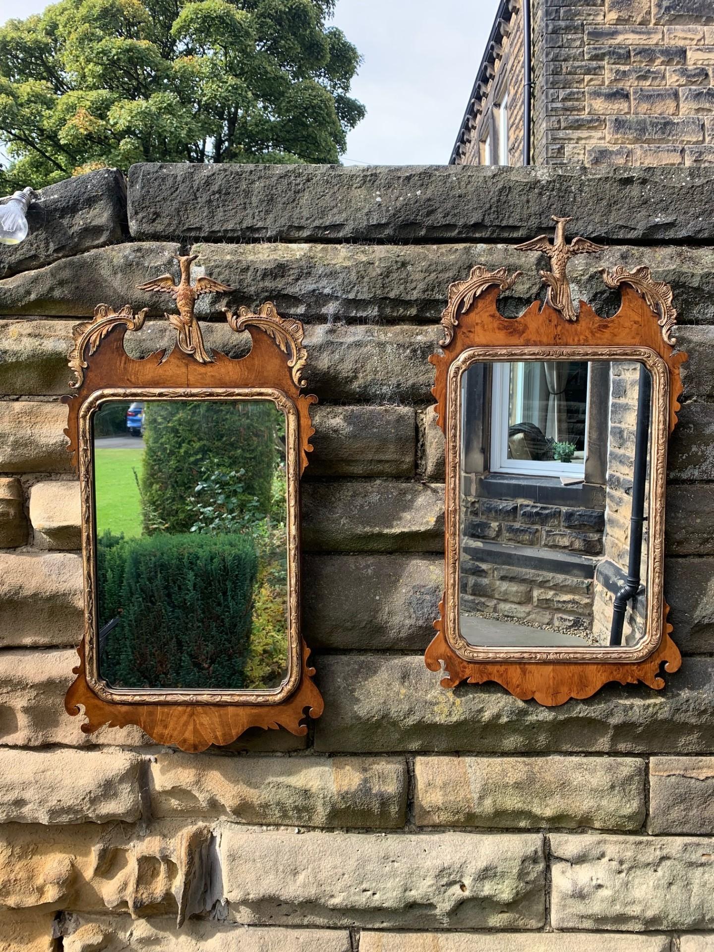 Pair Geo III Style Walnut & Parcel Gilt Pier Mirrors