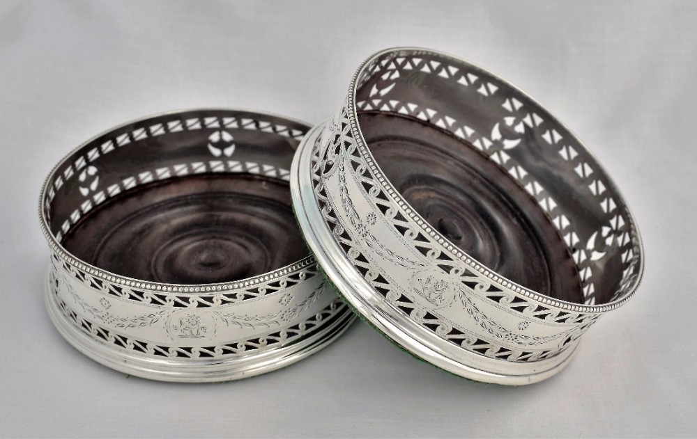Pair George III Pierced Silver Wine Bottle Coasters (1 of 1)