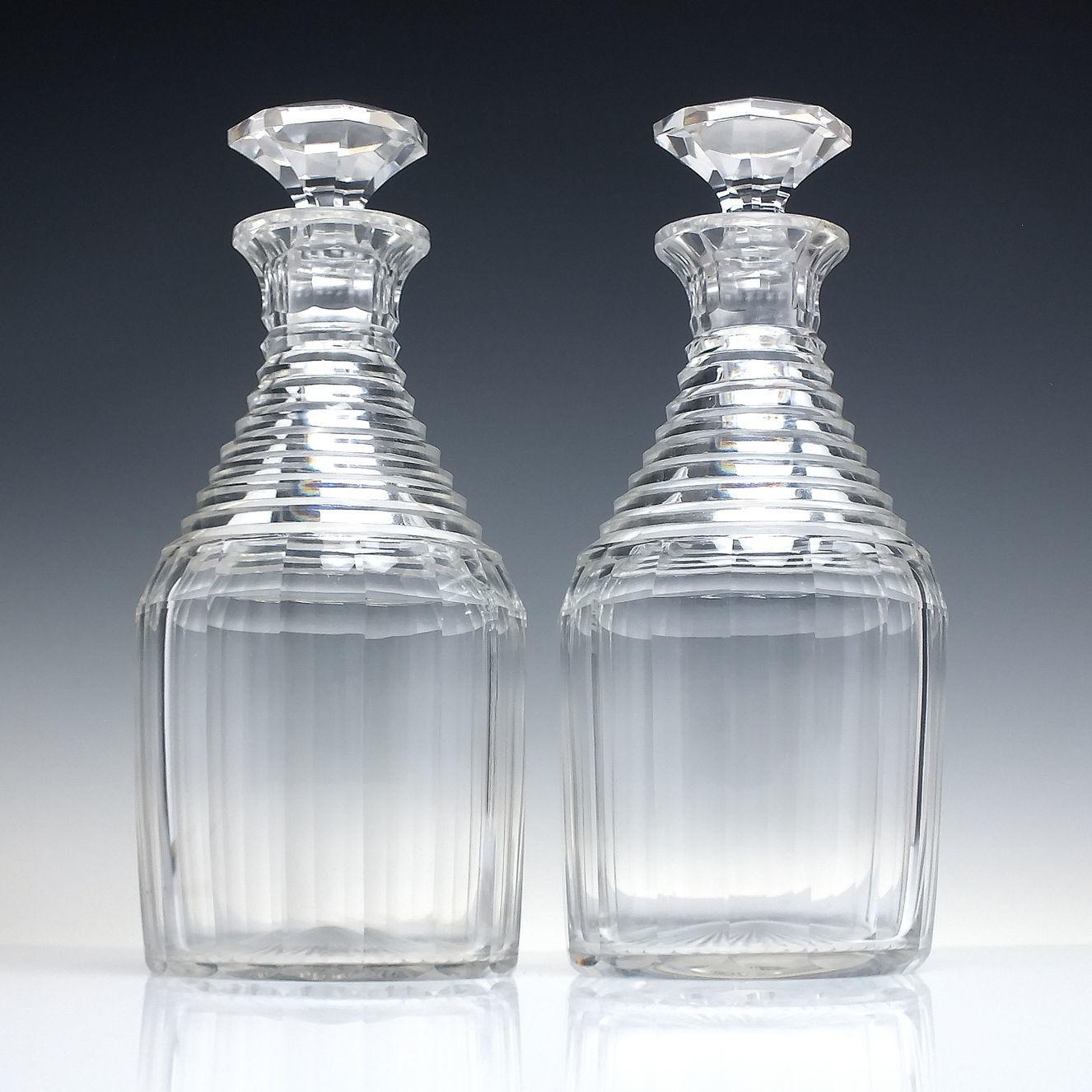 A superb pair of Nelson or Cylinder glass decanters dating to c1830.