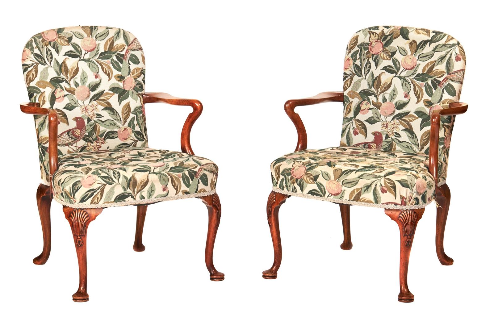 Pair Georgian Revival Walnut Elbow Chairs (1 of 3)