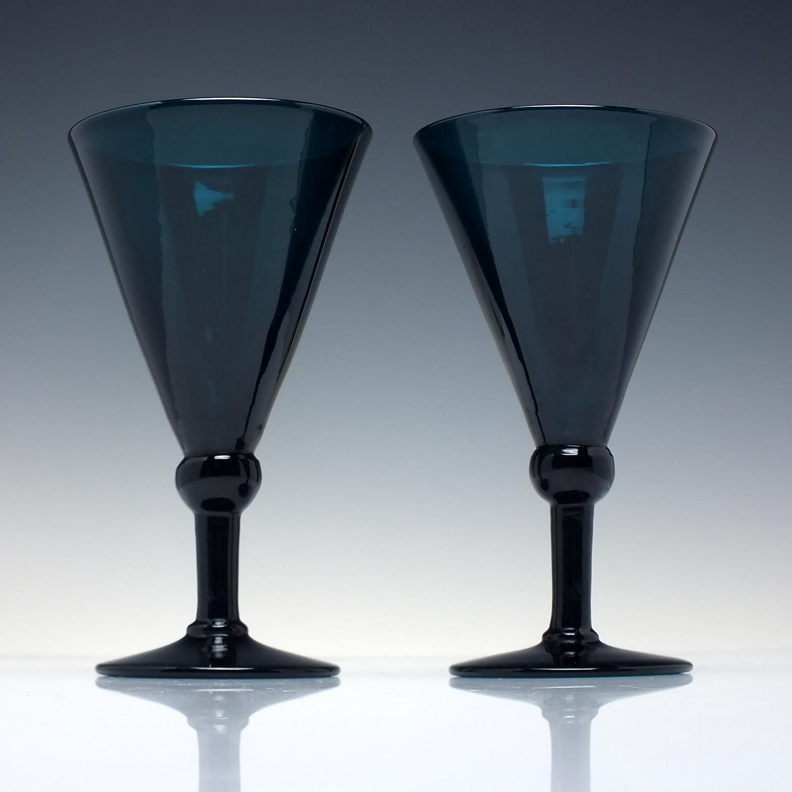 A superb pair of Georgian turquoise blue wine glasses dating to c1820.