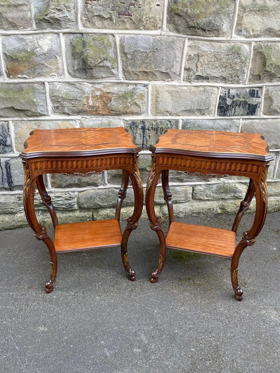 Pair Inlaid Satinwood & Parcel Gilt Bedside Tables