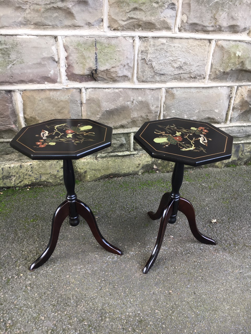 Pair Lacquered Tripod Wine Tables