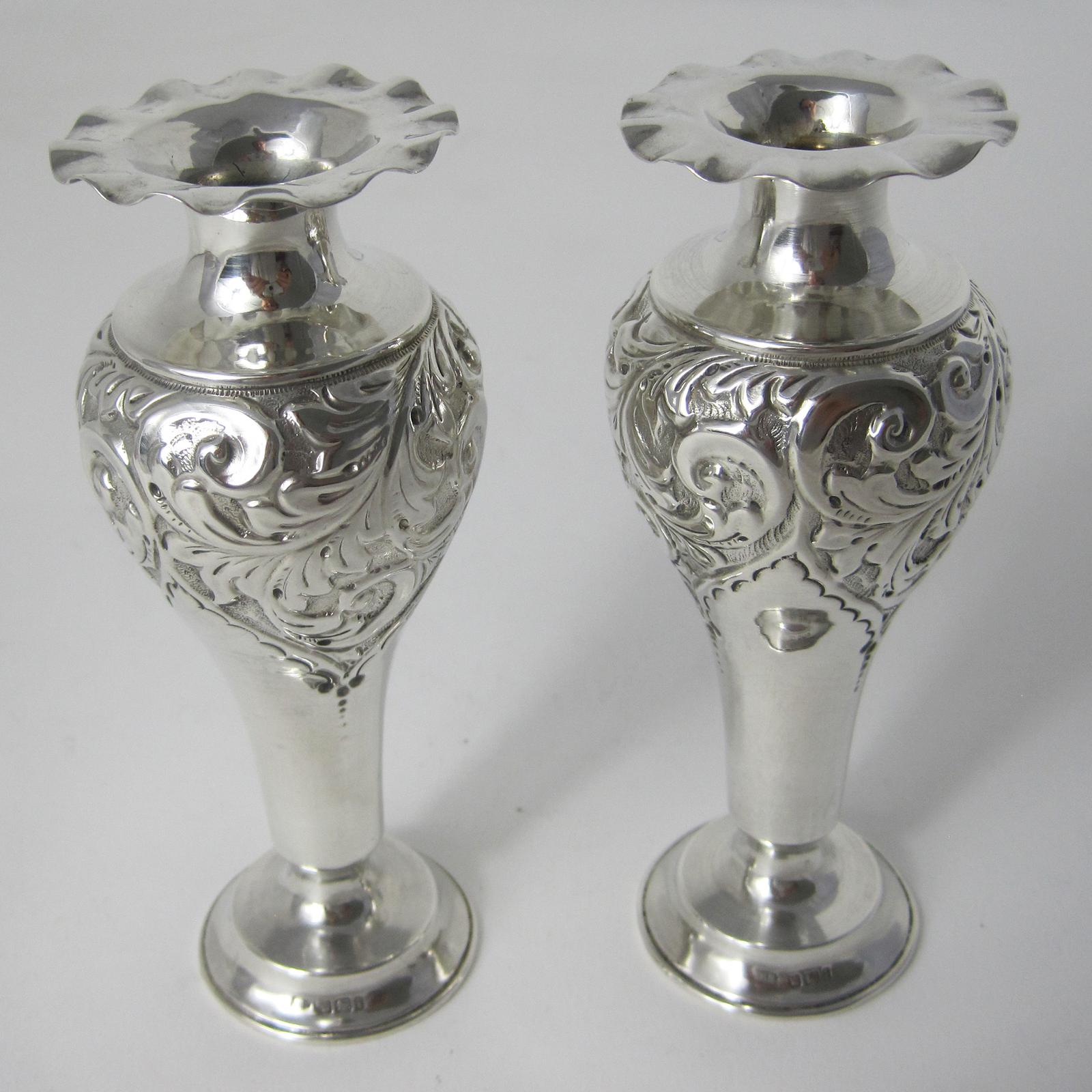 Pair Late Victorian Silver Flower Vases with a Crimped Neck (1 of 4)