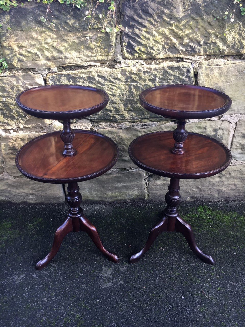 Pair Mahogany 2 Tier Wine Tables