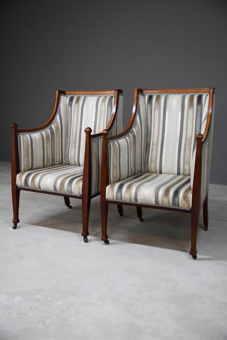 Pair Mahogany Upholstered Armchairs (1 of 11)