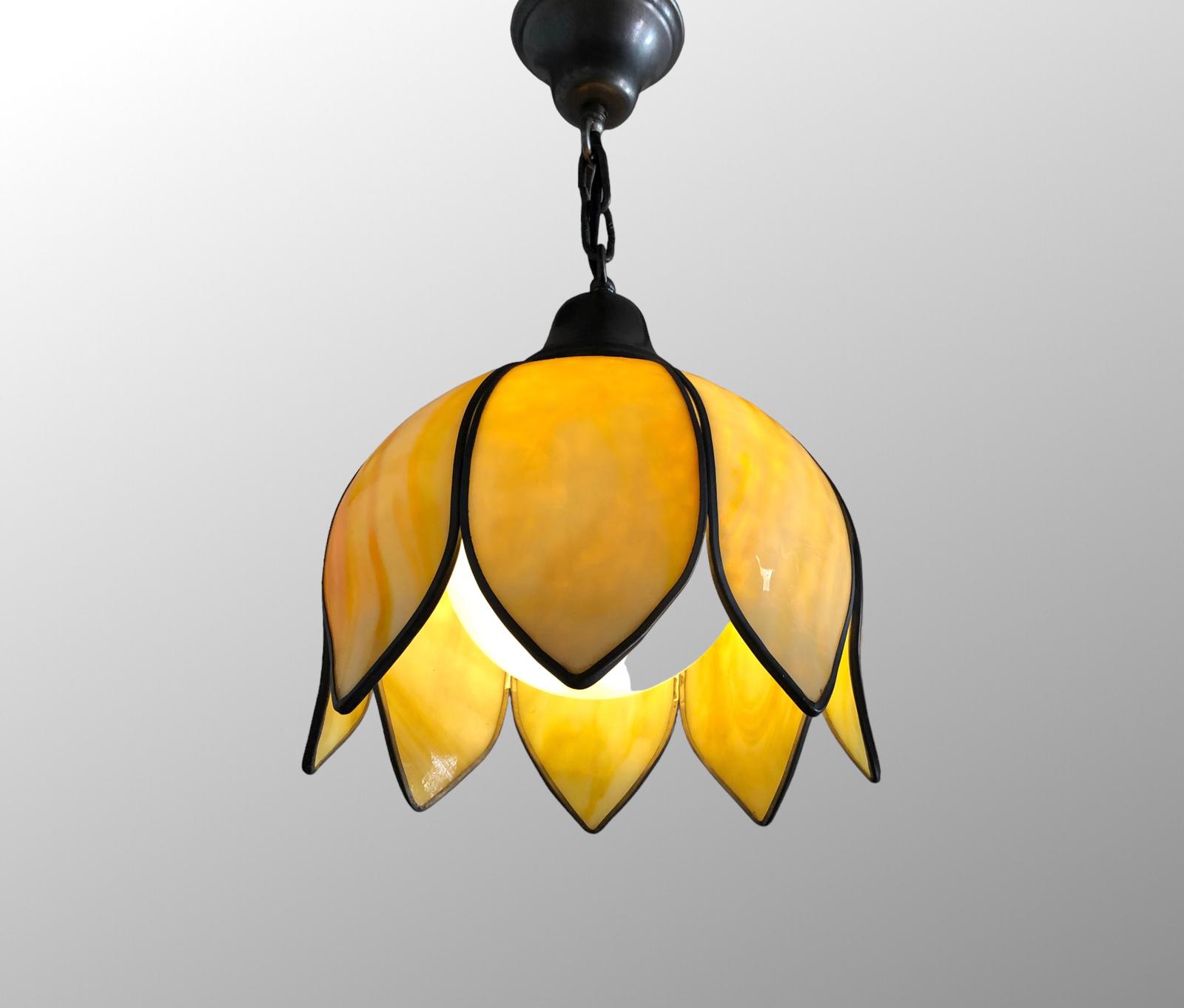 Pair Mid Century Slag Glass Tulip Lotus Pendant Lights
