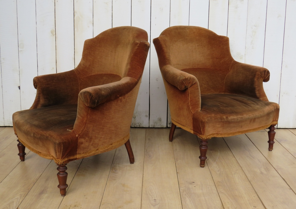 Pair Napoleon III Tub Chairs For Re-Upholstery.