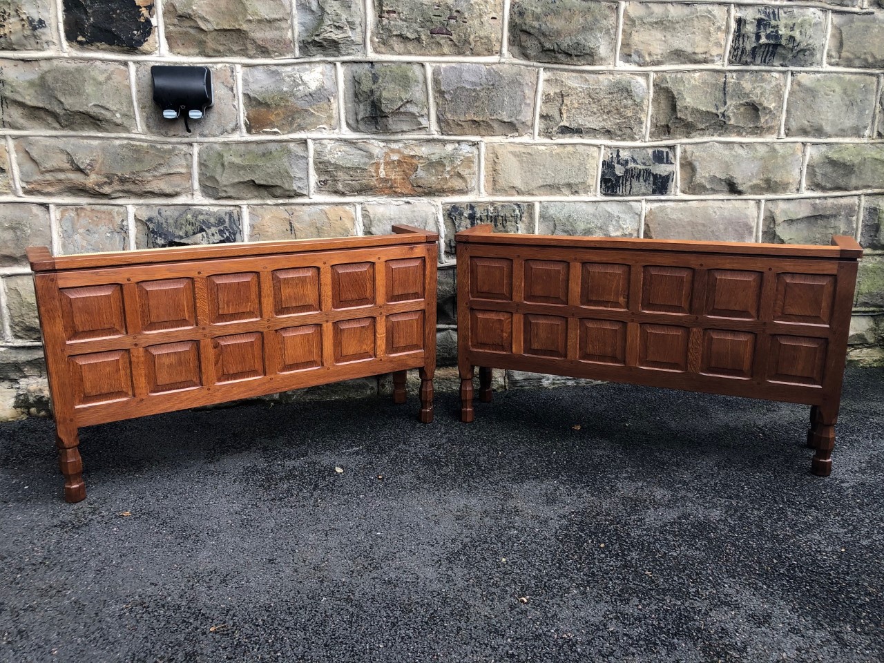 Pair Oak "Foxman" Malcolm Pipes Speakers in Cabinets Mouseman Style