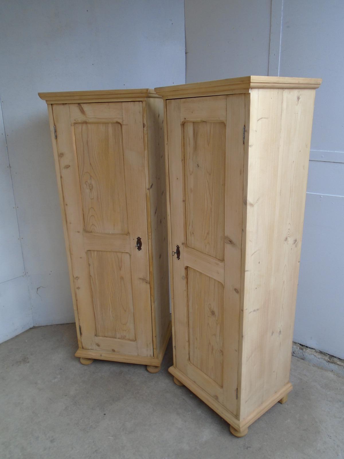 Pair of 1 Door 1 Drawer Antique Pine Storage Cupboards to wax or paint