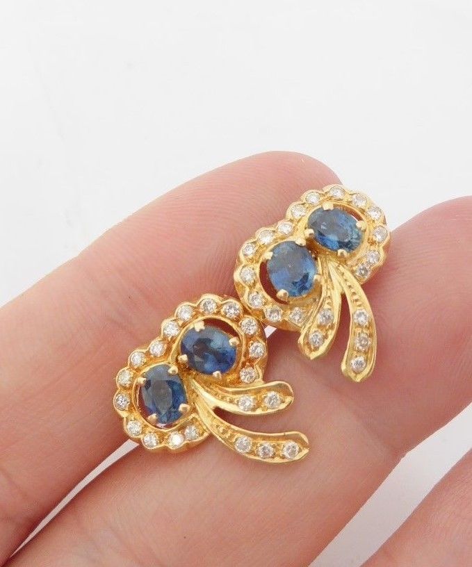 Pair of 18ct Gold 1ct Diamond & 1ct Sapphire Earrings