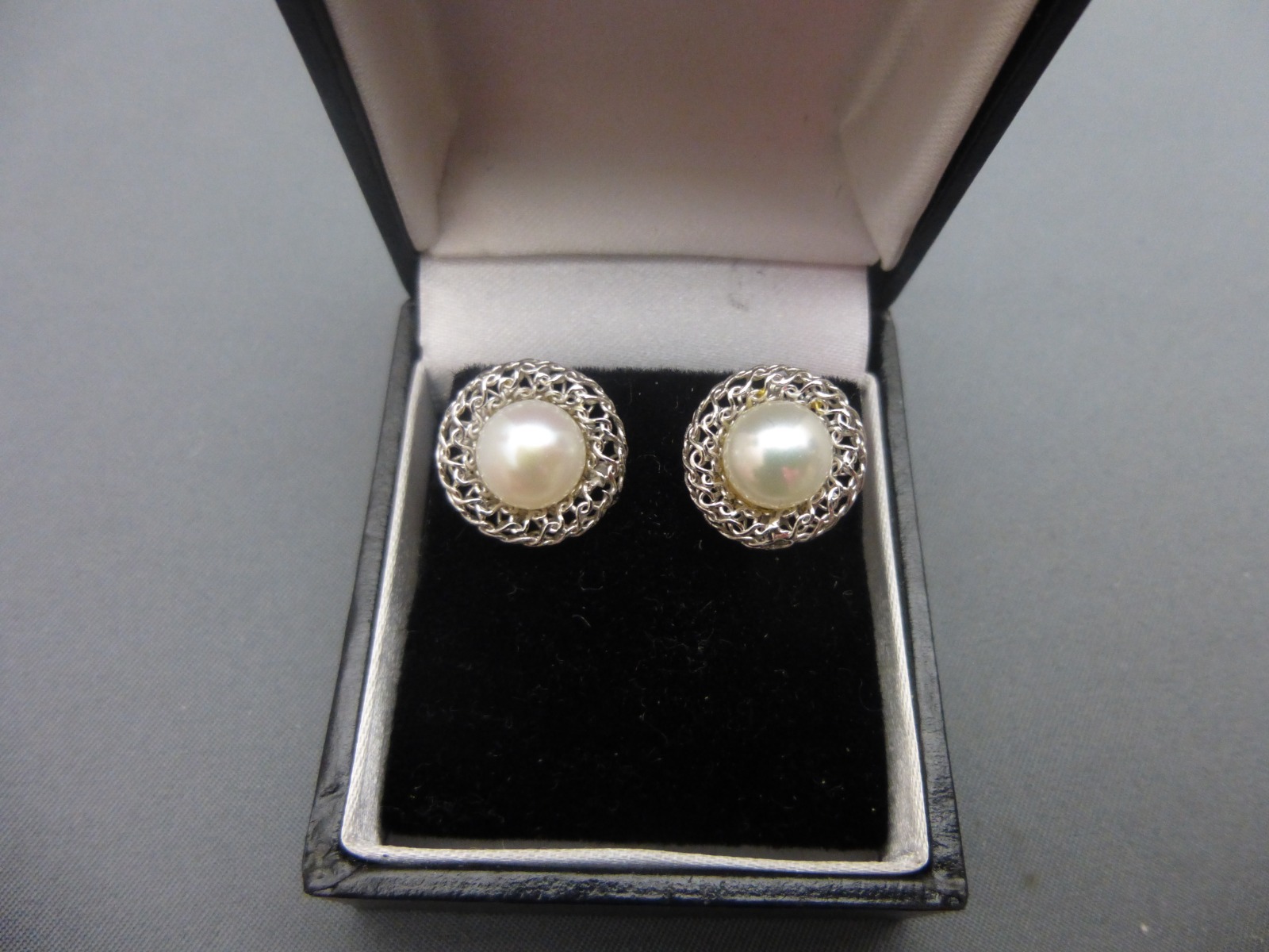 Pair of 18ct White Gold & Cultured Pearl Earrings