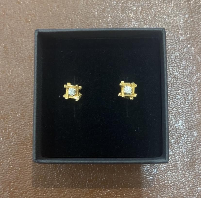 Pair of 18ct yellow gold diamond stud earrings. 4 claw set. Diamond weight 0.06 ct (total) 1.5 grams.