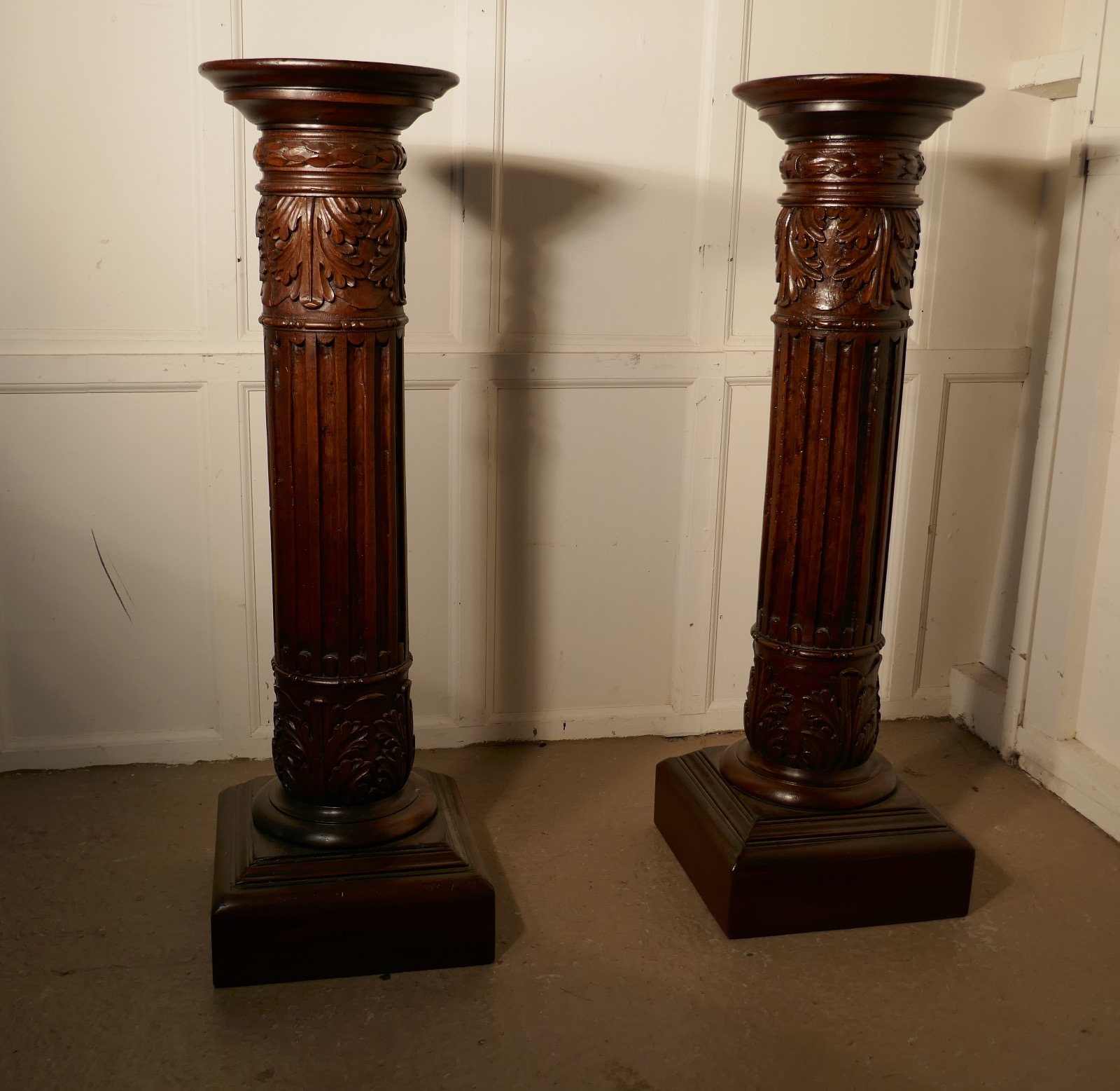 Pair of 18th Century Carved Solid Mahogany Pedestals