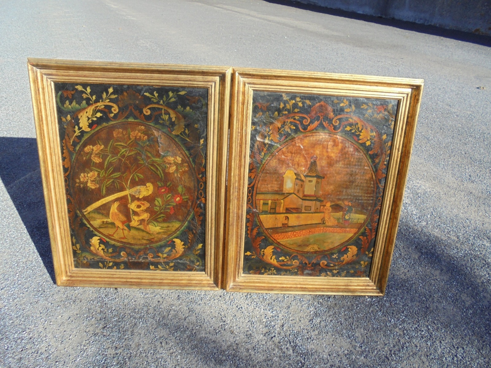 Pair of 18th Century Chinese Polychrome Paintings on Leather