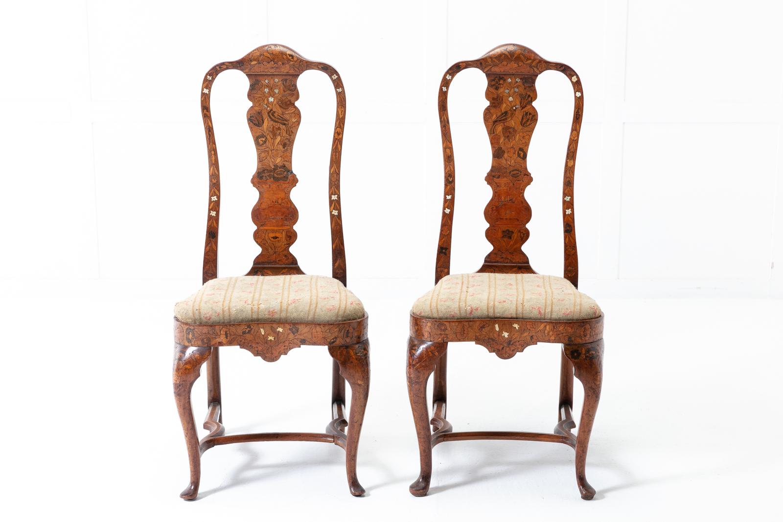 Pair of 18th Century Dutch Marquetry Side Chairs
