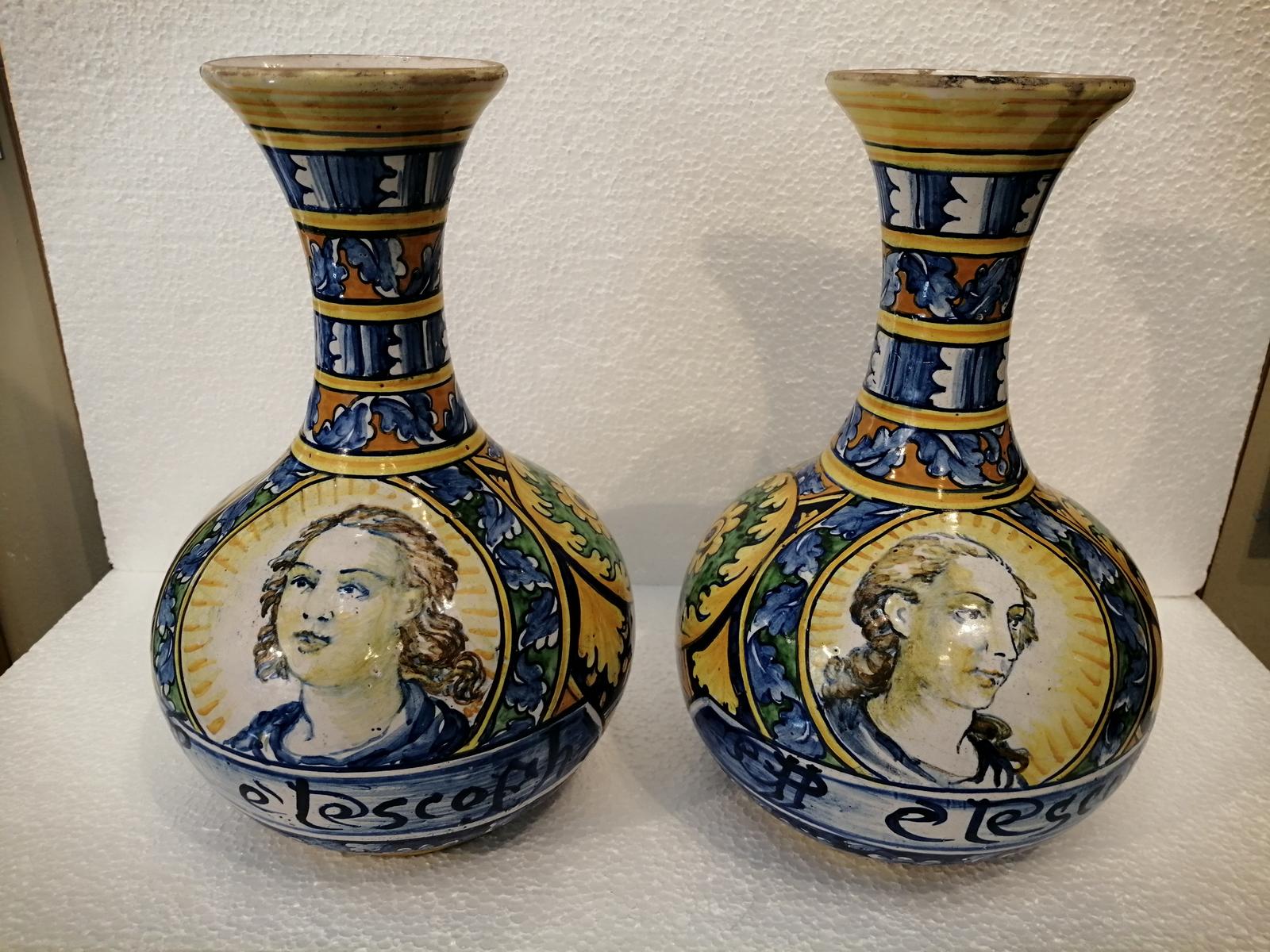 Pair of 18th Century Italian Maiolica Drug Bottles