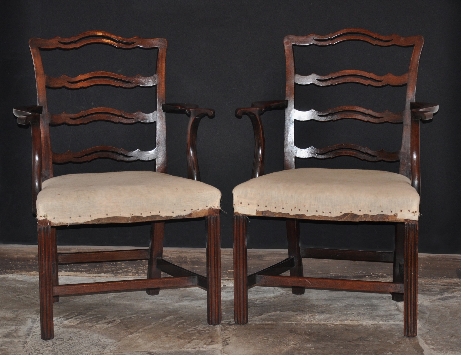 Pair of 18th Century Mahogany Chippendale Ladderback Armchairs (1 of 6)