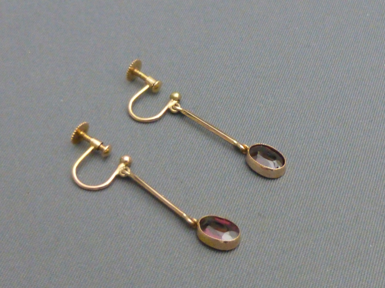 Pair of 1920s 9ct Gold & Garnet Screw Fitting Earrings