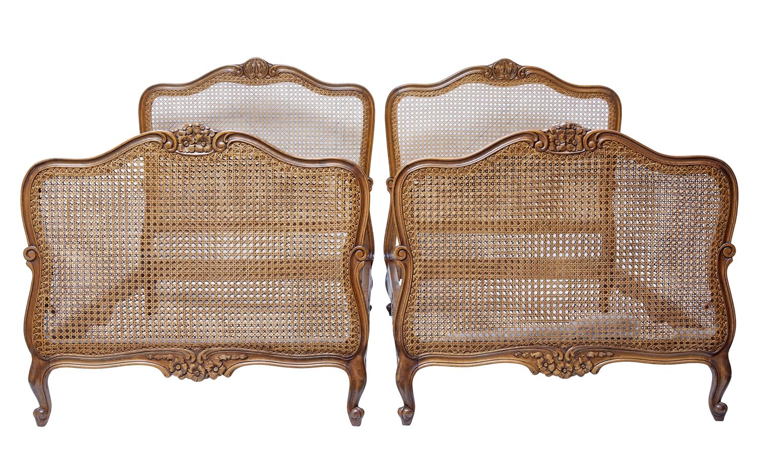 Pair of 1920s French Walnut & Cane Work Single Beds