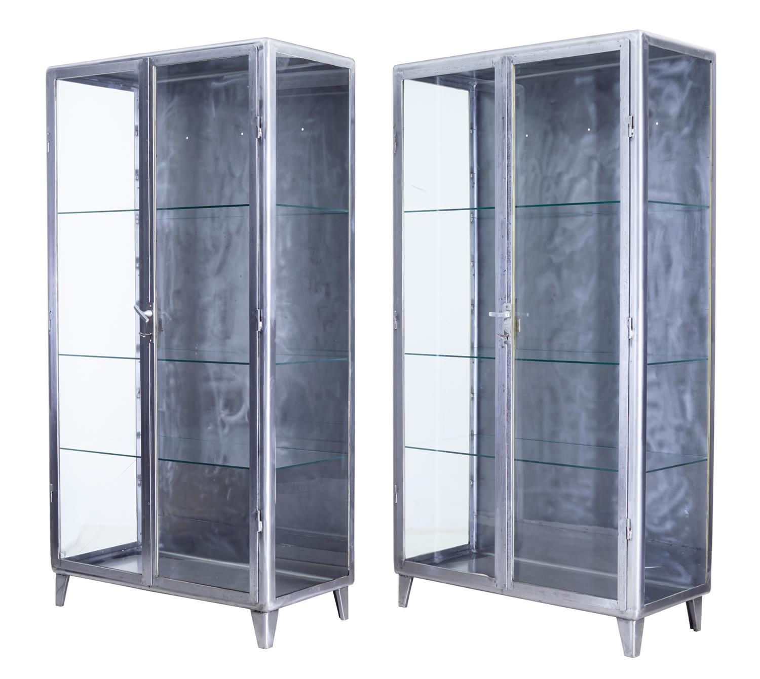 Pair of 1920s Polished Steel Medical Display Cabinets (1 of 1)