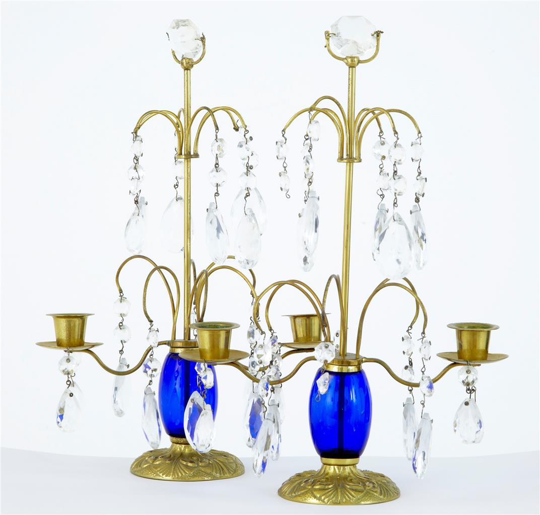 Pair of 1930's Brass & Cut Glass Decorative Candlesticks