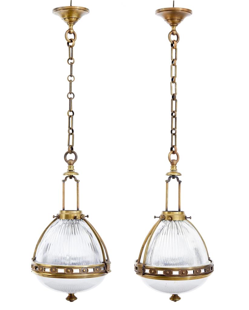 Pair of 1930's French Brass & Glass Pendant Lights (1 of 1)
